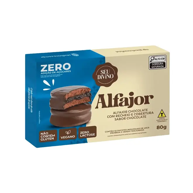 recheio ganache sabor chocolate (gordura vegetal, cacau em pó, óleo vegetal, líquor de cacau, bebida de arroz, edulcorantes: maltitol e glicosídeos de esteviol, emulsificante lecitina de girassol e aromatizantes), amido (Bacillus thuringiensis, Streptomyces viridochromogenes, Agrobacterium tumefaciens, Zea mays, Sphingobium herbicidorovans, S. maltophilia, Diabrotica firgifera, Dicossoma sp.), fécula de mandioca, cobertura sabor chocolate zero adição de açúcares, gordura vegetal, farinha de arroz, cacau em pó, sal rosa do Himalaia, emulsificante lecitina de girassol, aromatizantes, fermentos químicos: bicarbonato de sódio, difosfato dissódico e di-hidrogenofosfato de cálcio, e espessante goma xantana.NÃO CONTÉM GLÚTEN. ALÉRGICOS: PODE CONTER AMENDOIM, AVELÃS, CASTANHA DE CAJU, CASTANHA DO PARÁ, MACADÂMIAS, AMÊNDOAS E NOZES, PECÃS E SOJA.